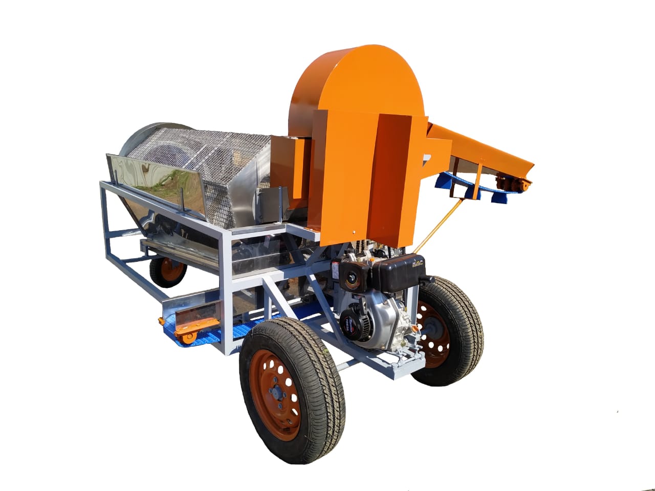 Confeccionada em aço carbono,com motor a gasolina, pode também ser encontrada em outra configuração, com motor diesel e com rodas aro 13'' para o deslocamento, com tração através do mesmo. Optamos por motor a gasolina/diesel, para ter uma maior liberdade na questão de deslocamento, temos a opção da máquina com motor elétrico.