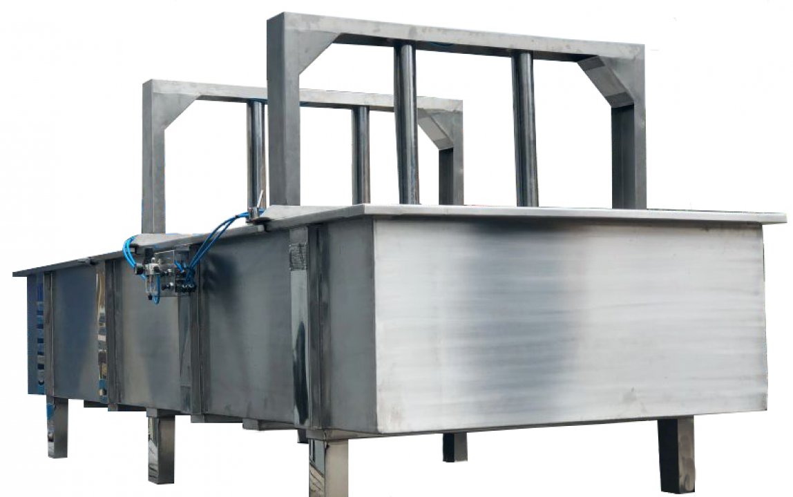 Tanque de Prensagem e dessoragem de massa. Fabricado em inox, com dupla camisa e sistema especial de aquecimento. Grande produtividade e facilidade operacional, fornecido com placas de pré-prensagem e placas de encosto de massa, sendo a prensagem feita por um sistema pneumático. Tem fundo reforçado, estrutura resistente, sem flambagem e ondulações, com qualidade de alto nível.